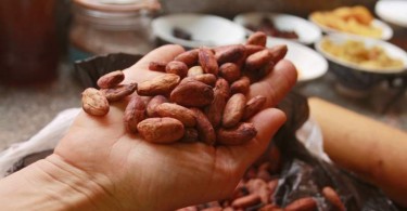 Visitamos a Angela Bedoya una tarde soleada de la pasada primavera y la encontramos a punto de preparar sus deliciosas barras energéticas en su cocina, un rico laboratorio culinario. Hay por aquí y por allá muchos pomos de vidrio con insumos de diferentes colores y formas, sus etiquetas indican: chía, girasol, castañas, peras, damascos… En un enorme y bello plato de cerámica, cuatro frutos de cacao color sangre llaman la atención. A su lado una máquina circular, alta y de apariencia galáctica destacaba por su rareza. Este es el electrodoméstico más valioso de Angela: su deshidratador, con el que empezó a inventar productos sanos, energéticos y deliciosos.