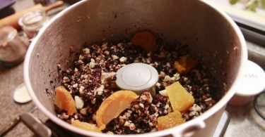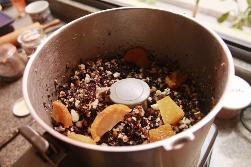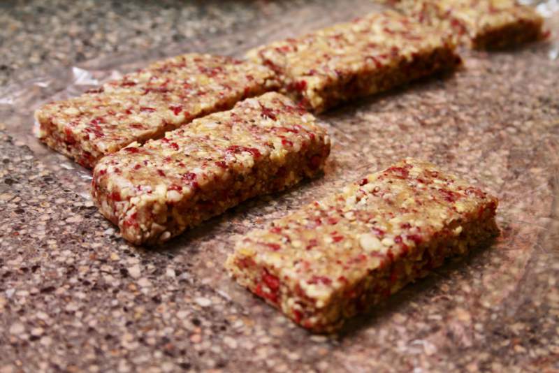 “Comienzo con los macerados en pisco. Me doy cuenta de que la fruta deshidratada se macera mucho más rápido. Si tú pones la fruta fresca dentro del pisco demora seis meses en quedar a punto, en cambio cuando introduces la fruta deshidratada inmediatamente comienza a soltar su aroma y su sabor y lo puedes tomar a las horas y es un macerado delicioso de fruta. Fue allí que comencé… Luego hice polvos de las cáscaras de cítricos y otra frutas para mezclarlos con sal de Maras. También he hecho polvos de frutos rojos, como sauco, fresa o arándanos para hacer tés. Incursiono en la barras energéticas cuando veo que mi hija comienza a consumir las comerciales en cantidades fuertes. ¡No solo son carísimas sino que de saludables no tienen nada! Tienen sirope de maíz, que es uno de los endulzantes más dañinos que hay, y cereales reventados (llamados coloquialmente ‘pop’) que ya no tienen nutrientes. Un día conversando con mi profesor de yoga, que es crudivegano, me contó que él hacía sus bolitas energéticas con pasas Goyi activadas y se me ocurrió hacer algo parecido con mis frutas deshidratadas, con los frutos secos, la miel cruda y el aceite de coco que le da brillo y las conserva. Mis barras tienen todo crudo, deshidratado y activado. Activado significa que los frutos secos los remojo y les sale la colita. Luego los seco un poco en la deshidratadora para que eliminar el residuo de agua. Luego con el procesador muelo todo, lo amaso, lo refrigero y cuando ya está duro lo corto.”