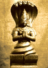 El Yoga Iyengar pertenece al linaje de Patanjali por esa razón todas las clases empiezan con una invocación a este sabio y erudito quien escribió, entre otros, el libro «Los Yoga Sutras», un conjunto de aforismos sobre esta ciencia milenaria. Patanjali escogió y organizó de forma magnífica y visionaria toda la información sobre el Yoga que se encuentra en los más importantes textos sagrados indios como los Vedas y Upanishads. El libro «Los Yoga Sutras» (que para muchos practicantes es la ‘Biblia’ del yoga) convirtió al Yoga un «darshana» (doctrina, filosofía) y es considerado desde entonces una de las 6 filosofías de la India. A continuación una imagen de cómo se suele representar al sabio Patanjali.