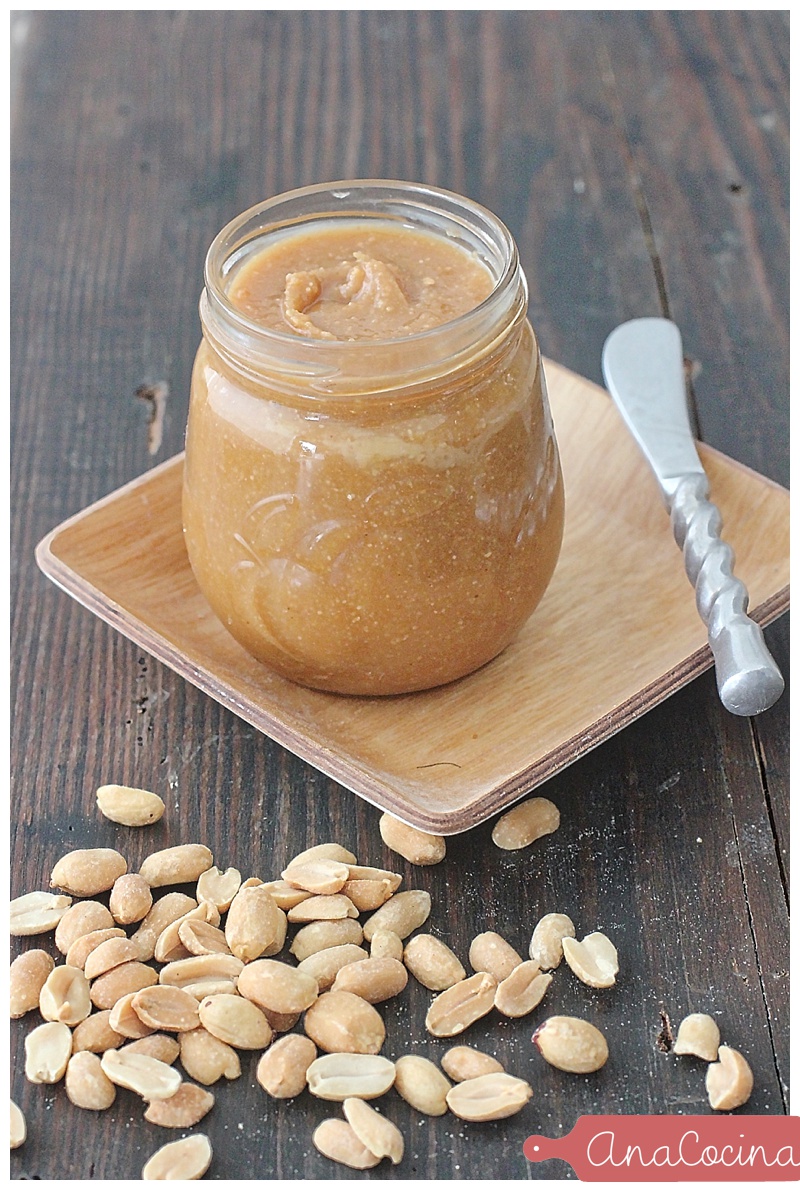 El maní es una legumbre muy nutritiva, unos cuantos granitos son una excelente fuente de proteínas, antioxidantes como el resveratrol, proveen una gran cantidad de ácidos grasos monosaturados (los que ayudan al buen colesterol y que es el mismo que tiene el aceite de oliva) y además tiene mucha vitamina E… ¿Qué más se le puede pedir a un alimento? ¡Y además son ricos ricos! Les admito que estoy sesgada, yo AMO el maní, y AMOOOO la mantequilla de maní! Para mí es una comida perfecta y súper versátil: se le puede agregar a batidos y jugos, es una rica base para salsas y vinagretas al estilo thai, es deliciosa untada sobre una tajadita de pan, y pues yo hasta me la como solita, a cucharadas, cuando tengo un bajón de energía en el medio de la tarde o cuando me da una ansiedad terrible de dulce. El problema es que cuando uno va al supermercado y mira el precio de un frasquito de mantequilla de maní queda muerto en el instante: es carísima!!!! Por suerte podemos hacerla en casa sin ninguna complicación y por una fracción del costo y les prometo que nunca van a volver a comprarla envasada!