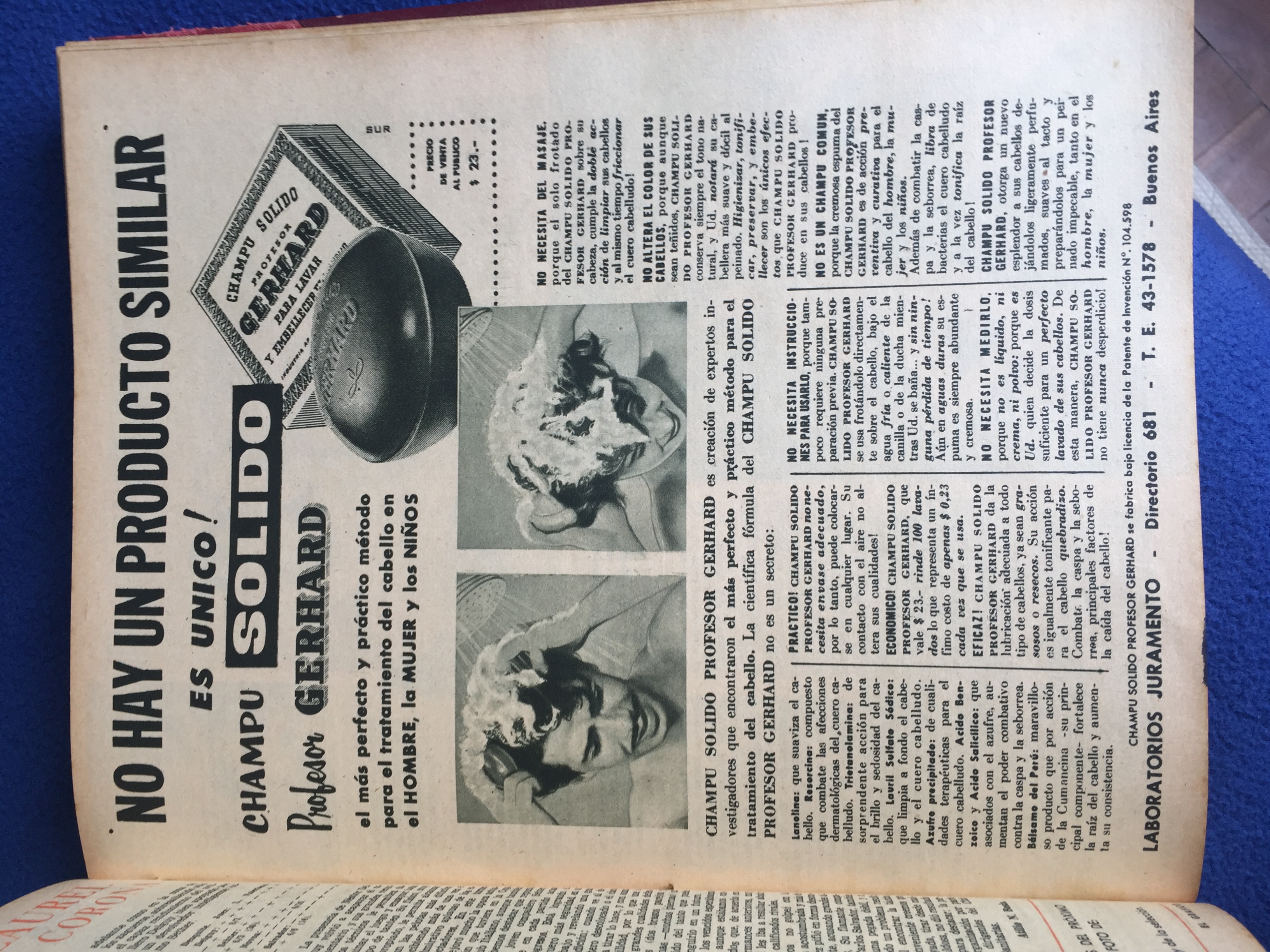 Muchas personas hace un siglo o poco más se lavaban el cabello con jabones en barra, aunque el resultado no debió ser muy bueno… pero limpiaba. Si bien se afirma que fue la empresa Lush la que por una casualidad creó el primer shampú sólido en los años 70, en los años 50 ya existían shampús sólidos en varios países del mundo. Observa la publicidad en la destacada revista «El Gráfico» de Argentina de 1957 que pongo a continuación. El shampú que promocionan usa los insumos de moda en ese entonces, casi todos químicos salvo un extracto de plantas del Perú, mi país.